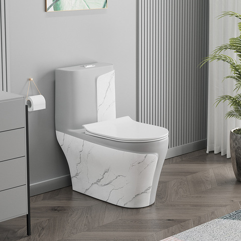 โถชักโครกลายหินอ่อนสีขาวและสีดำสำหรับห้องน้ำห้องส้วมเซรามิก WC ระดับไฮเอนด์